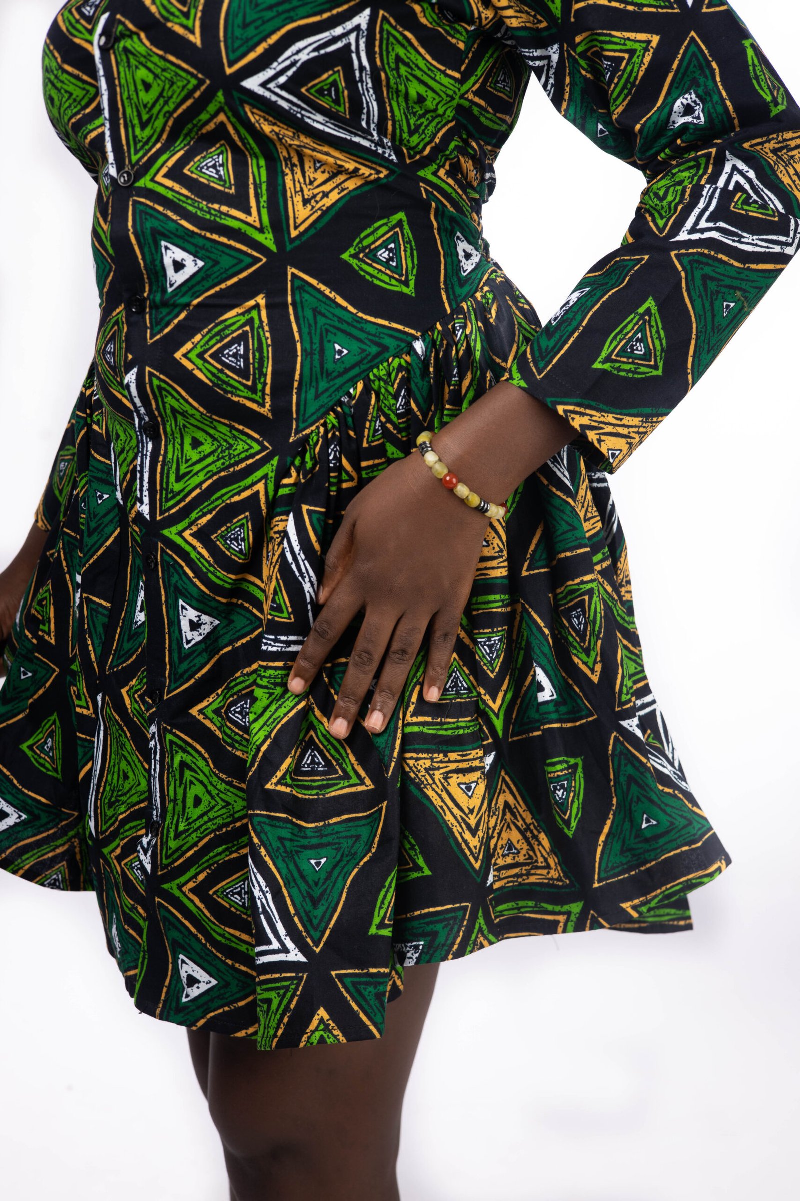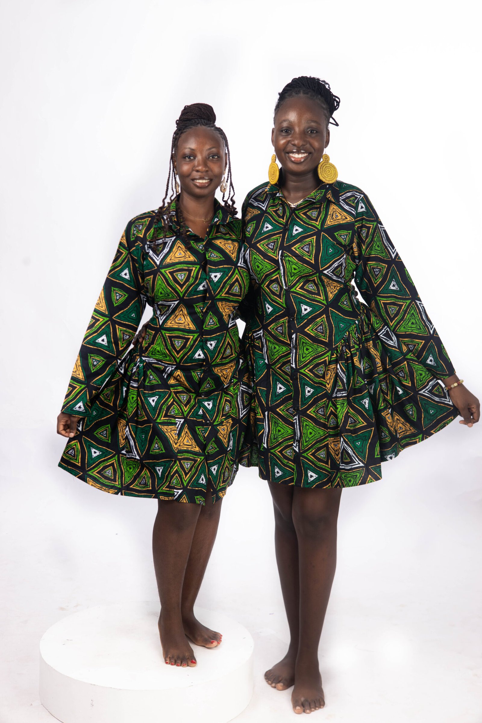 Chic meets playful in this Ankara Dress with Side Ruffles. The back of the dress includes a corset-inspired lace-up design, offering customizable support and shaping through crisscrossed straps threaded through loops. Tailored for flair and movement, it’s perfect for weddings, birthdays, or stylish weekend brunches.