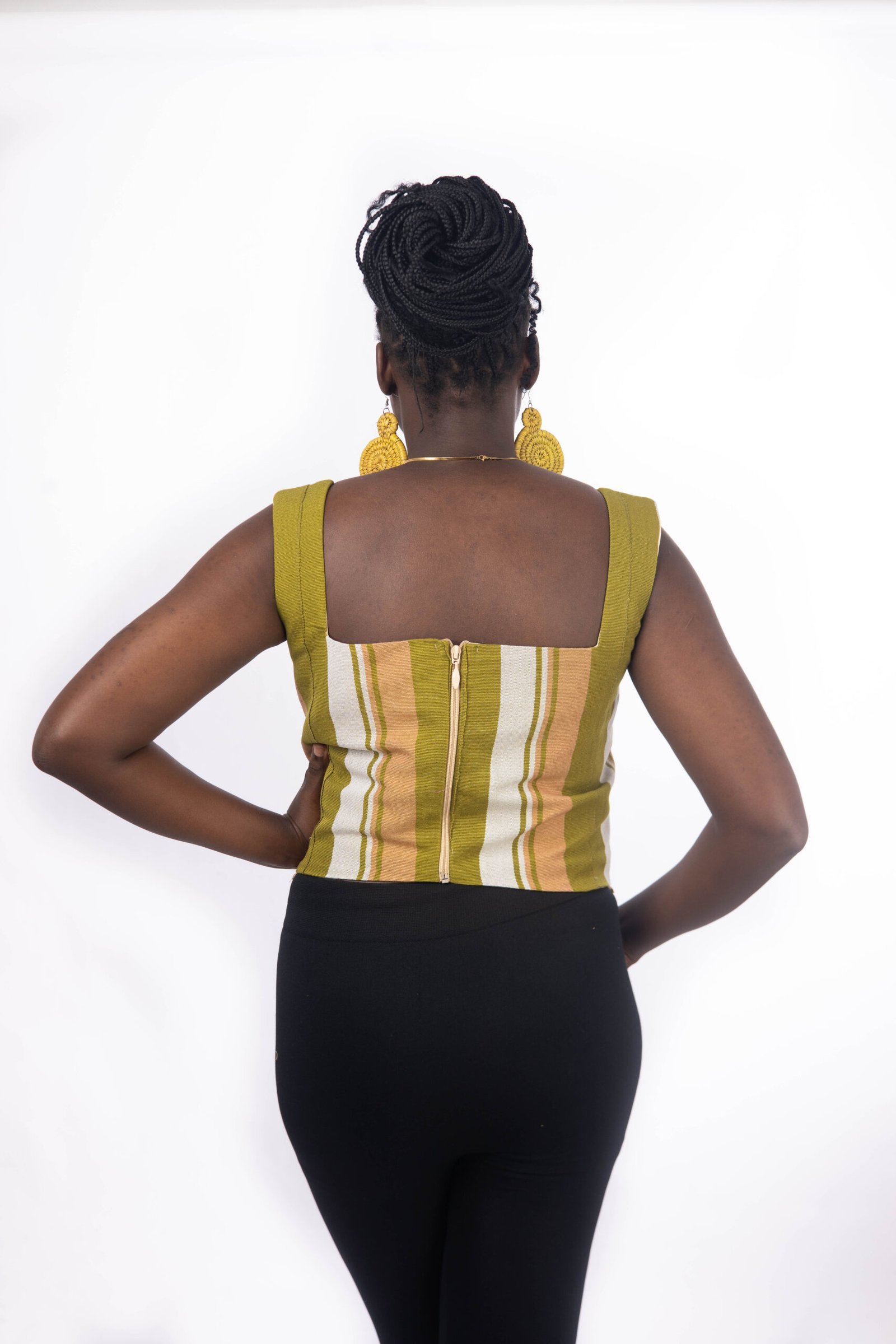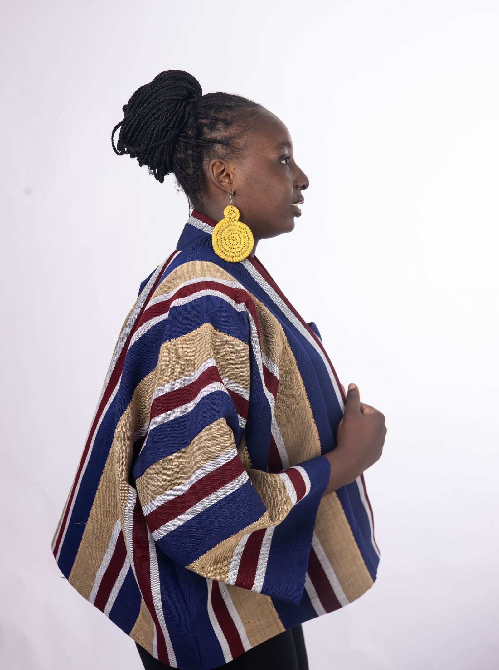 This Aso Oke Jacket with Crop Top is a head-turner — structured, stylish, and steeped in tradition. Pair it with Jeans, leggings ortailored pant for a bold fashion statement.