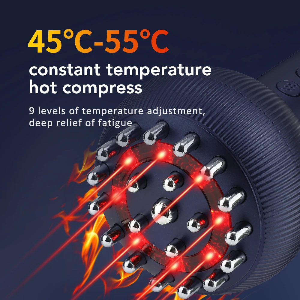This innovative massager integrates red light therapy, 9-level vibration, soothing hot compress, and microcurrent stimulation to penetrate deep into muscles, promote blood circulation, and ease fatigue. The 21 stainless steel brush heads provide a wider scraping area for efficient guasha massage, making it ideal for full-body use on the arms, legs, back, waist, and more.