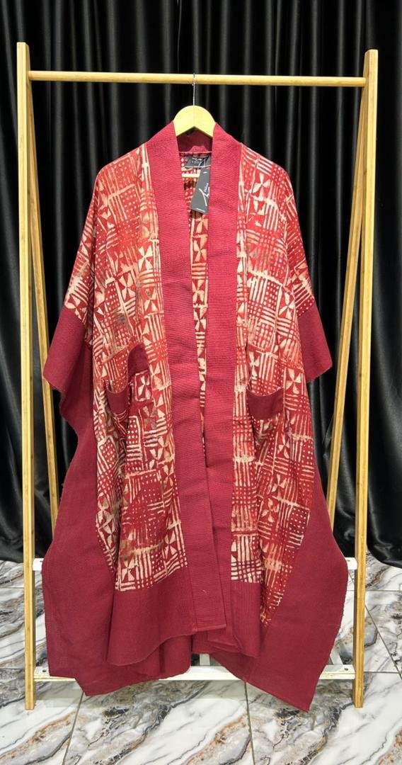 Grace meets tradition in this stunning wine-hued kimono gown, expertly crafted from a rich blend of hand-dyed Adire and textured Aso Oke fabric. Designed with a flowing silhouette and wide kimono sleeves, this gown delivers effortless elegance and cultural pride in one striking piece. Perfect for weddings, traditional events, or upscale occasions, this gown is a bold yet timeless representation of African fashion artistry.