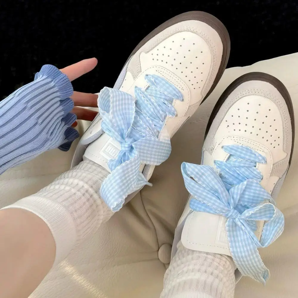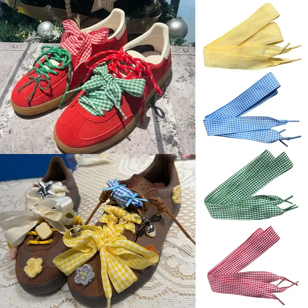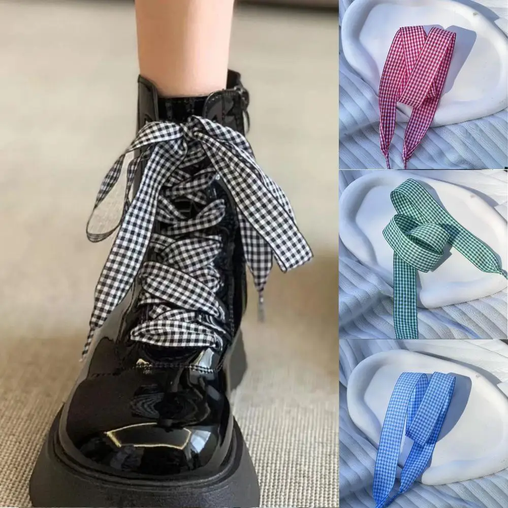 New Flat Checkered Shoe Laces Fashion Women Shoelaces For Sneakers High-top Canvas Casual Shoe Laces No Elasticity Shoestrings