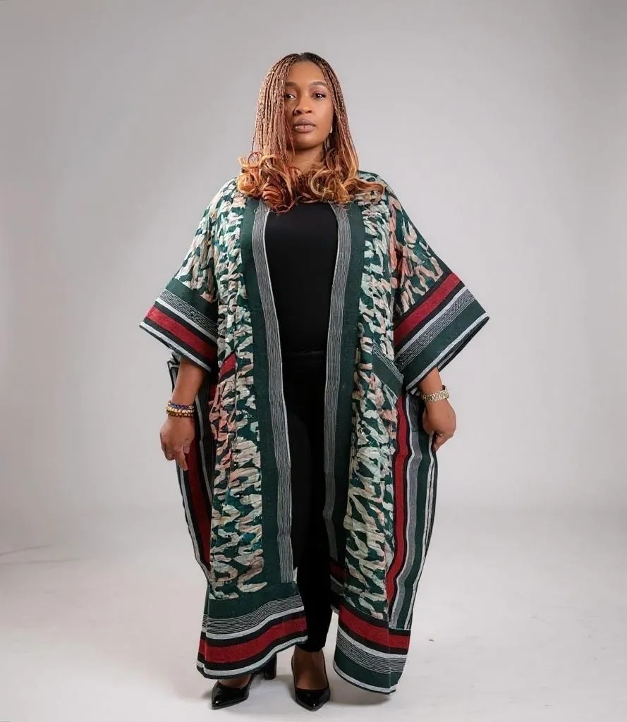 Elevate your look with the Royal Adire & Aso Oke Midi Kimono – a modern classic infused with West African heritage. This statement piece blends bold Adire batik patterns with structured Aso Oke detailing, offering elegance, ease, and cultural richness in every wear.