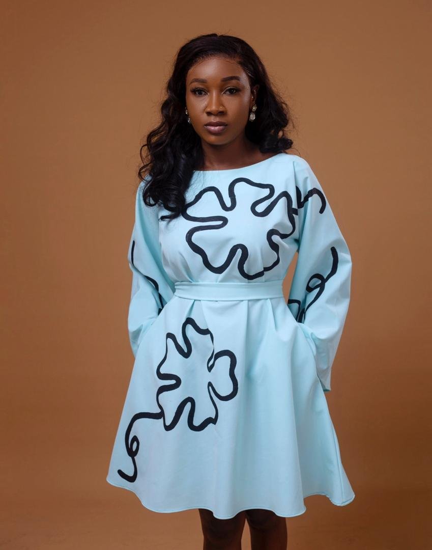 Vibrant loose fit mini dress made with high quality synthetic fabric. it has a hand painted bloom design defining timeless beauty and poise in colour blue. It has 2 inseam pockets and a detachable belt. Length is 35” – 40”.