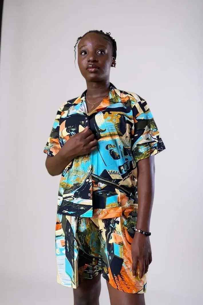 Make a bold statement in this eye-catching Vintage Short Set. With its vibrant prints and relaxed fit, it’s the perfect choice for anyone who values comfort and standout style. Unisex and versatile — ideal for sunny days, festivals, or casual outings.